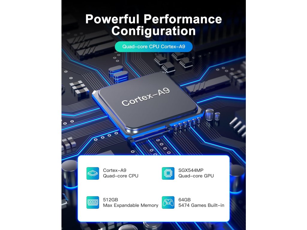 Konzole nabízí desítky emulátorů a tisíce herních titulů, které na nich můžete hrát stejně jako na původních konzolích. Špičková ergonomie, kvalitní displej a silná baterie slibuje dlouhé hodiny nezapomenutelných herních zážitků s vašimi oblíbenými hrami. Konzole obsahuje 64 GB paměťovou kartu s možností rozšíření o dalších 512 GB ve druhém slotu!