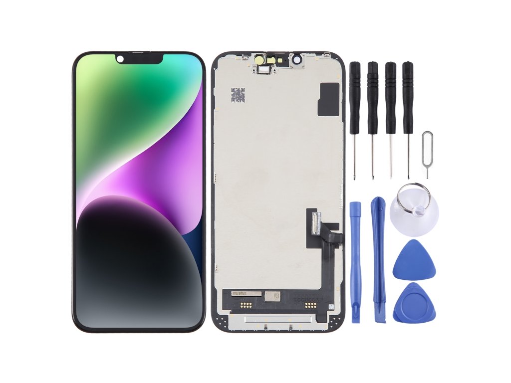 Vysoce kvalitní certifikovaný náhradní díl s tříletou zárukou. Kompletní přední část LCD displeje a dotykového skla pro iPhone 14.
