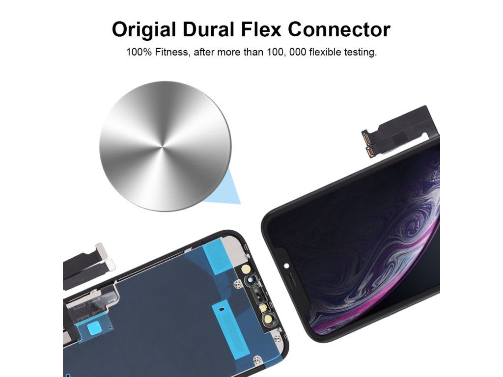 Vysoce kvalitní certifikovaný náhradní díl s tříletou zárukou. Kompletní přední část LCD displeje a dotykového skla pro iPhone XR.